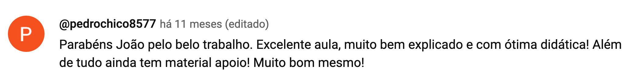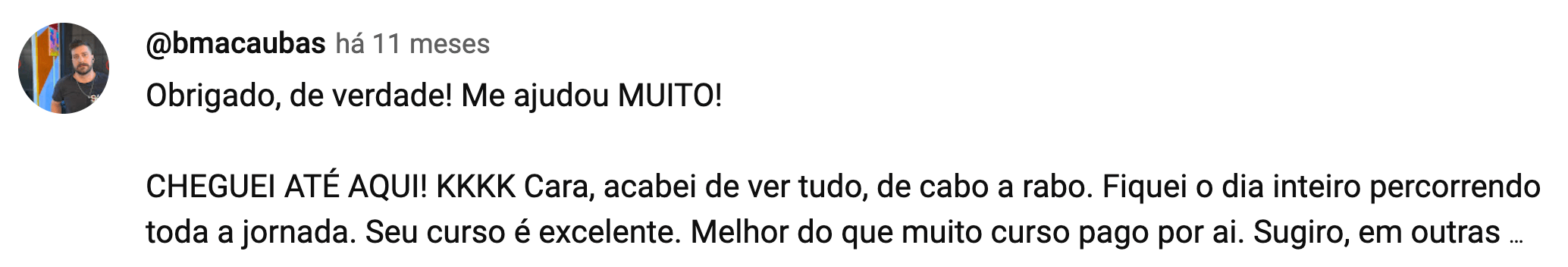A formação é 100% online, com aulas organizadas por trilhas que te levam do zero ao nível profissional. Tudo isso com uma didática fácil de acompanhar, que já ajudou centenas de pessoas a entender o que antes parecia impossível.